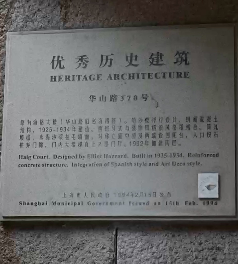 优秀历史建筑铭牌 澎湃新闻记者 张呈君 摄