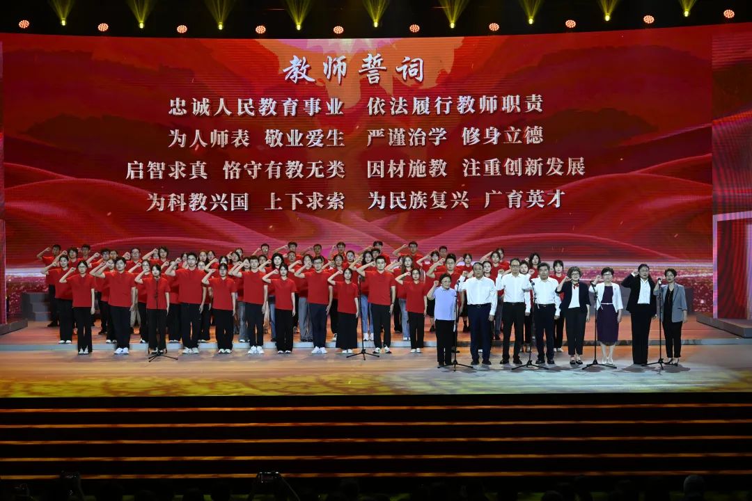活动现场,上海优秀教师代表带领上海市新教师代表、师范生代表,完成了庄严而神圣的教师宣誓仪式。