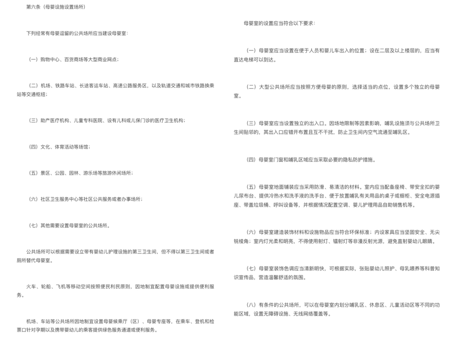 《管理办法》中关于母婴室设置场所及要求的相关规定。 本文图片均为上观新闻 图