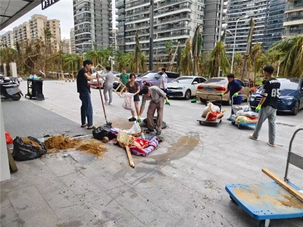 这些事例也只是暴风雨中众多华住一线门店的缩影。事实上,面对突发的自然灾害,华住人始终能迅速集结,凝聚力量解决问题,为周边居民和住客筑起一道温暖防线。随着台风“摩羯”过境,各类重建工作也在接连展开,在员工的齐心协力下,目前不少华住门店的卫生情况也基本恢复到台风前。