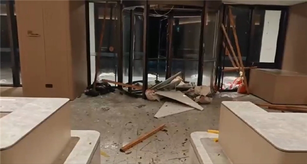 图:遭强风侵袭后的全季海口国际会展中心酒店大堂