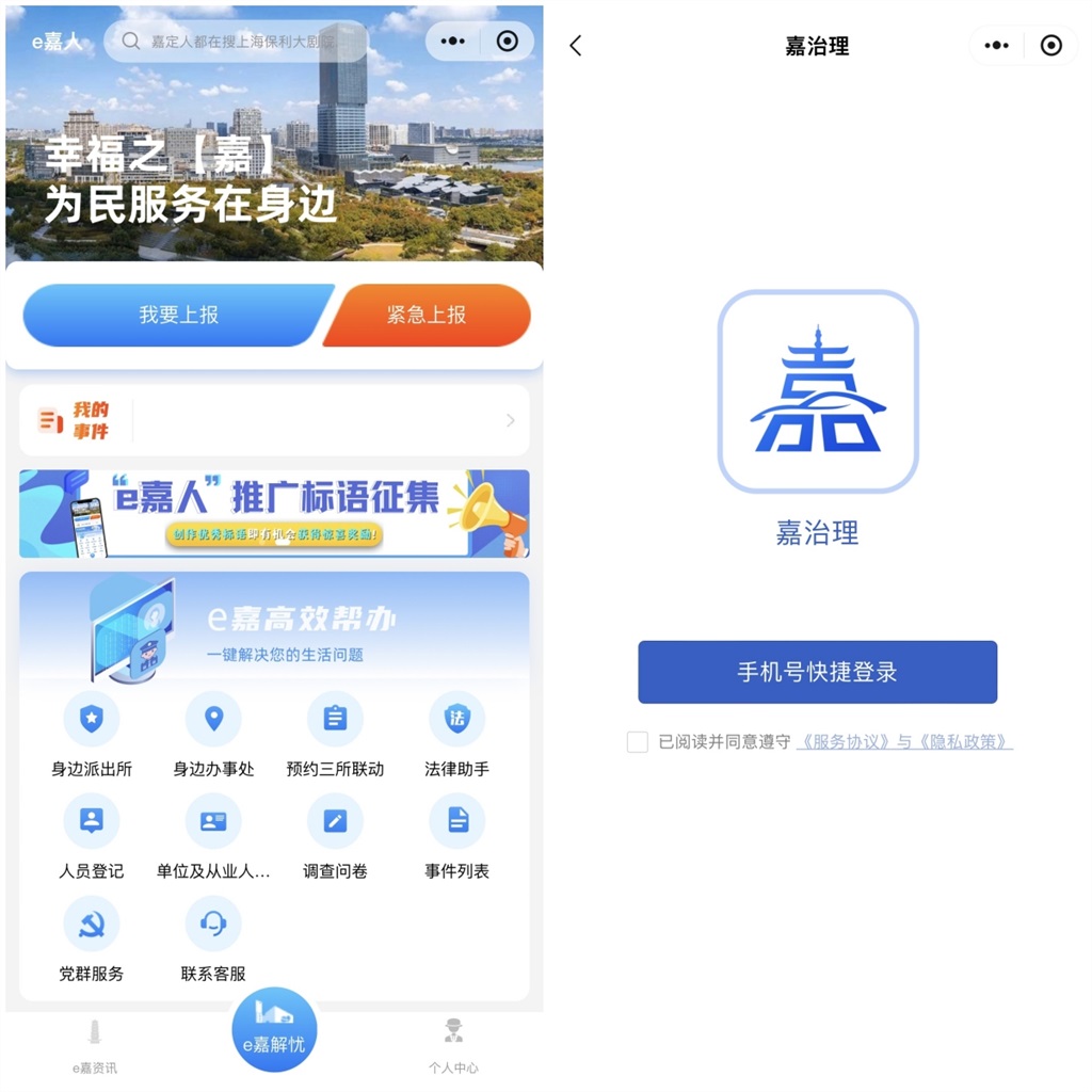 图说:“e嘉人”小程序和“嘉治理”平台截图