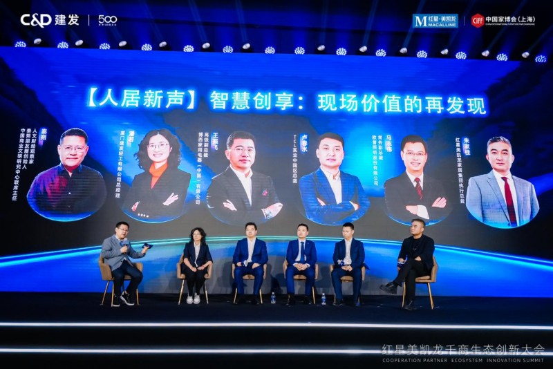 建发轻工总经理潘若、博西家用电器(中国)高级副总裁王振飞、TCL实业中国区总裁卢春水、欧普照明常务副总裁马志伟、红星美凯龙家居集团执行总裁朱家桂在随后举行的圆桌论坛上,就目前“三家一体”趋势及以用户为中心的解决方案进行探讨。