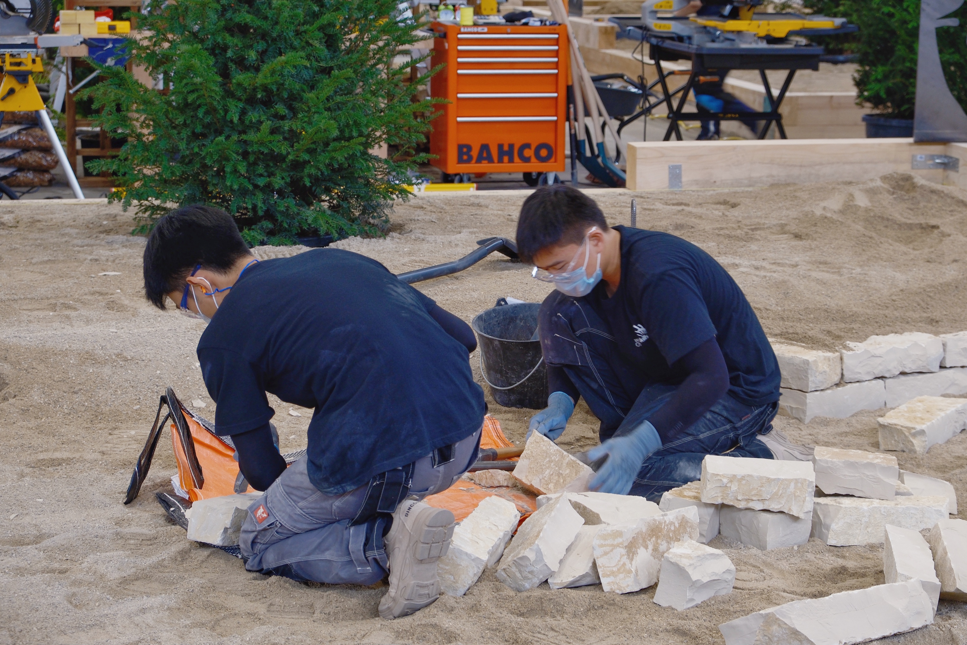 场馆内,机械“大块头”随处可见。车身修理、工业机械、飞机维修,这些项目占据着大片的场地,选手们围着机舱、车身,不放过每一个细节。键盘声、工具声在比赛现场不绝于耳,网站技术、网络安全、云计算项目上,选手们对着屏幕“高速运转”,而在木工、园艺、砌筑这些项目上,选手们用技能工具“玩着艺术”。