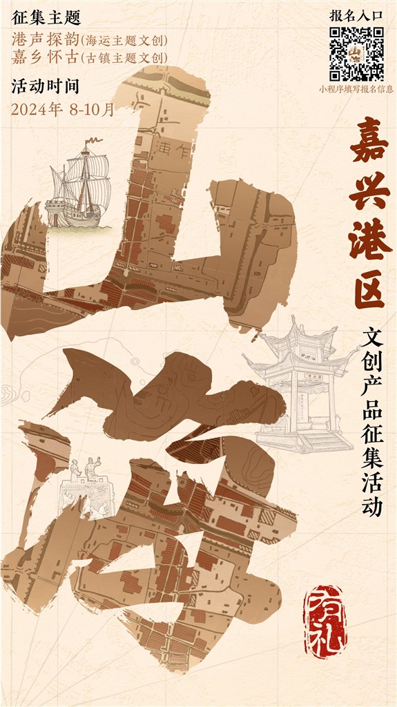 山海相融,浸染江南风韵。本次征集主题主要分为“港声探韵——海运主题文创”“嘉乡怀古——古镇主题文创”二类。其中,“港声探韵——海运主题文创”要求围绕港区辉煌的千年海运文化为设计创作主线,挖掘港区海洋文化内涵,结合海运历史、地方资源、特色产业等元素符号,在兼用创意性、实用性和观赏性的同时,开发设计具有嘉兴港区时代特色和历史意涵的文创产品,讲好海运故事;“嘉乡怀古——古镇主题文创”要求以辖区内乍浦镇岁月悠长的古镇文化为设计创作主线,围绕嘉兴港区丰富的文物古迹和历史文化遗存,结合区域历史传说、自然名胜、风俗民情、红楼元素、文化名人等文化意象,提炼文化符号,应用其特色文旅资源,设计开发符合其文化内涵、市场需求的文创作品。