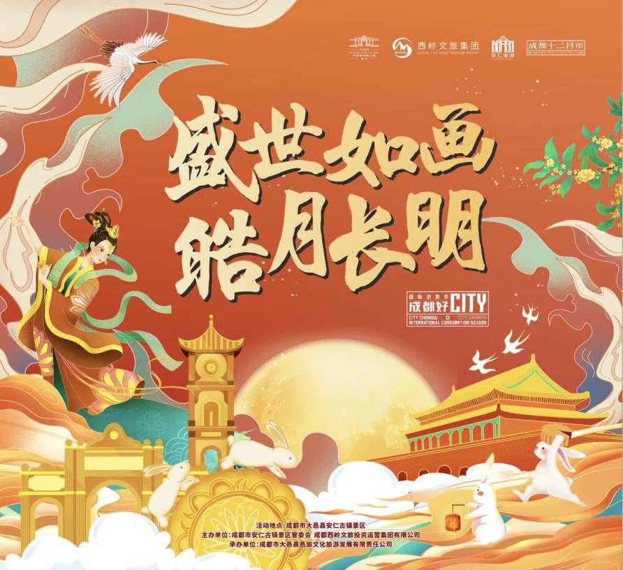9月15日-17日,由成都市安仁古镇景区管委会、西岭文旅集团共同举办的“盛世如画,皓月长明——长月安仁·共赏芳华”活动,在安仁古镇举行。活动不仅有随吃随逛的“古镇公馆老街”、精彩的国风“月宫迅音”的音乐表演、中秋小仙女“捣药仙子”、更有“盛世中秋——八仙巡游”、“捣药花仙灯”等活动。