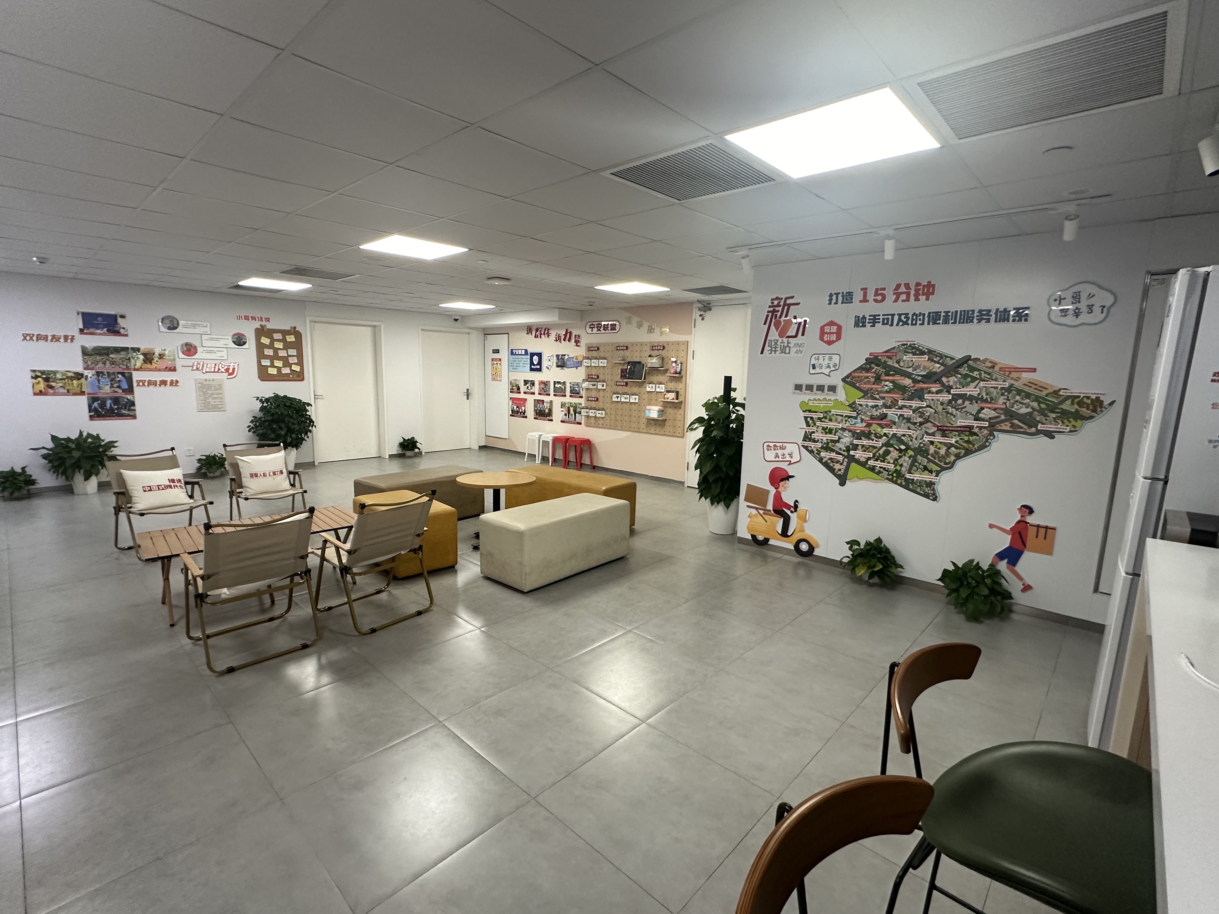 走进位于大宁路街道党群服务中心一楼的“新心驿站”内,微波炉、快充充电器、可供休憩的沙发等诸多便利设施映入眼帘。