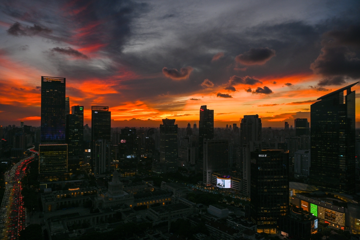 2024年9月14日,上海,台风“贝碧嘉”带来的火烧云。澎湃新闻记者 朱伟辉 图