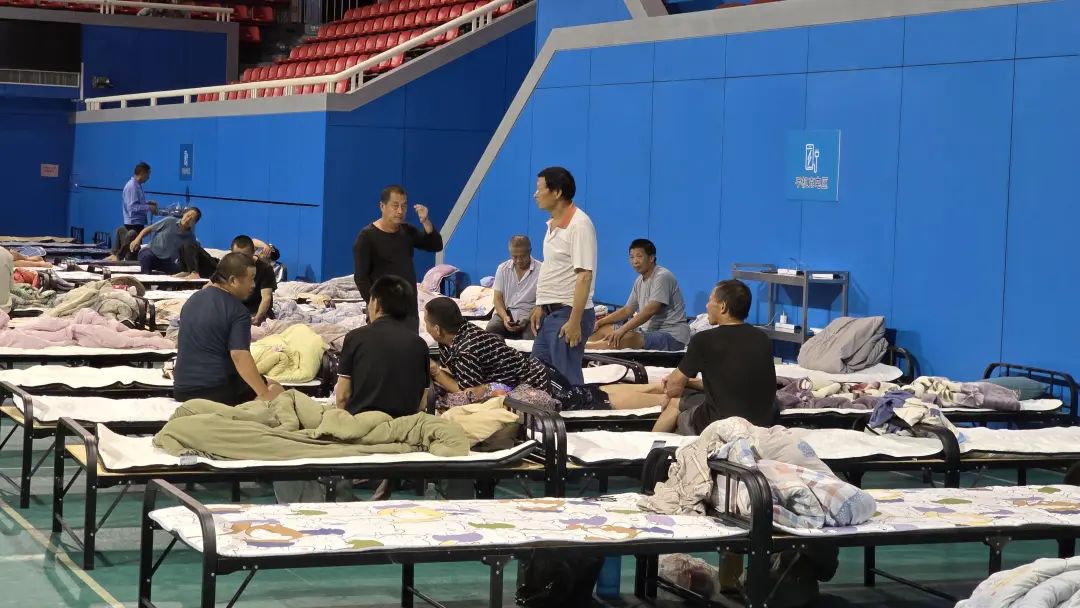2024年9月15日,上海卢湾体育中心体育馆,161名市政工人临时安置于此。 本文图片均由 上海市黄浦区 提供