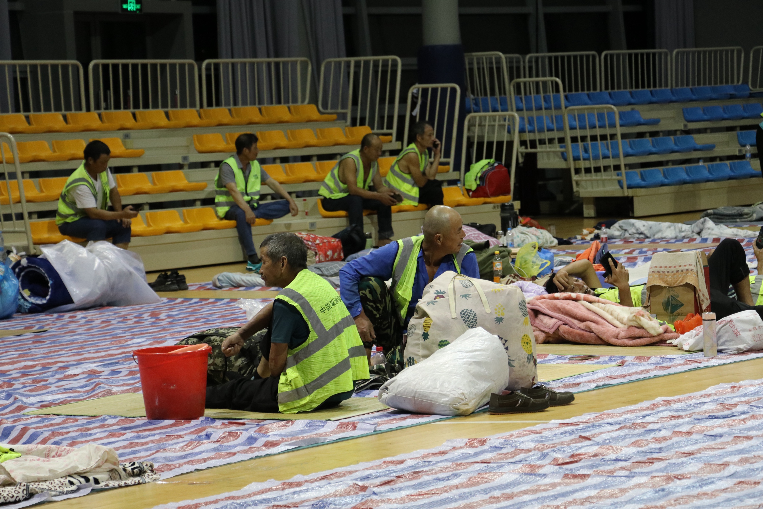 据上海缤纷里建设发展有限公司总经理梁伟麟介绍,此次乐高乐园项目转移人员被安置于2个安置点,他所在的金山体育馆安置点共计安置289人。这里除了一日三餐,还准备了其他食品及生活物资。等到台风警报解除,将安排车辆有序把大家送回工地。