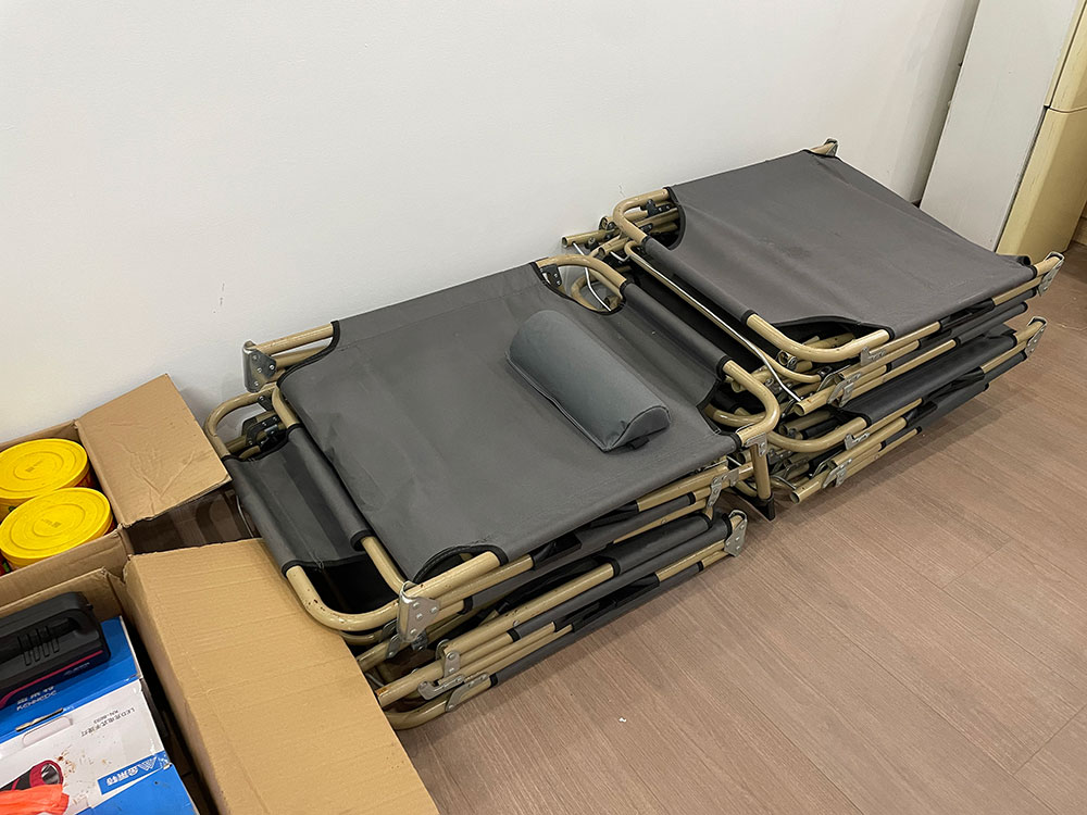 安置点准备的折叠式行军床。
