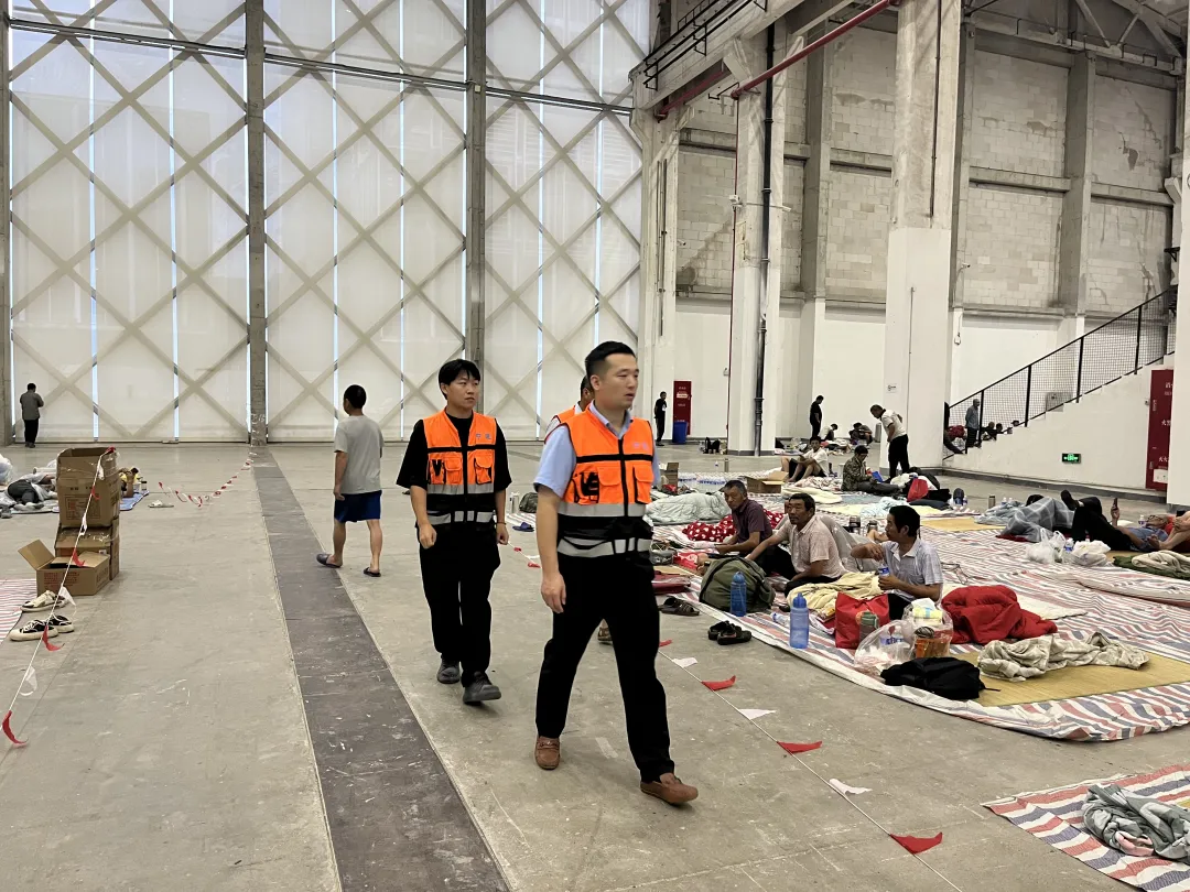 9月15日夜间和9月16日,区建管委重点检查了安置点项目管理人员到岗情况,要求各工地务必安排好管理人员在安置点进行人员管理,及时向工人发放食物、饮用水等生活用品,安抚好工人情绪。