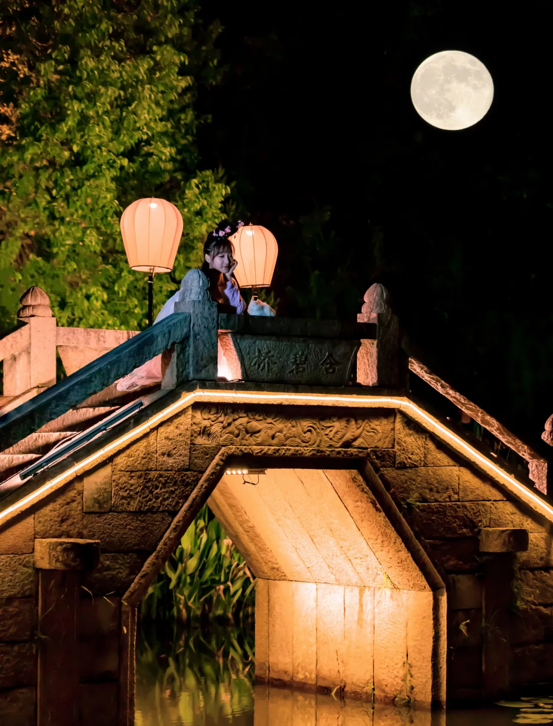 秋风起,月渐圆此时,一轮明月高悬月光与古桥、河水交相辉映目之所及皆是流光溢彩