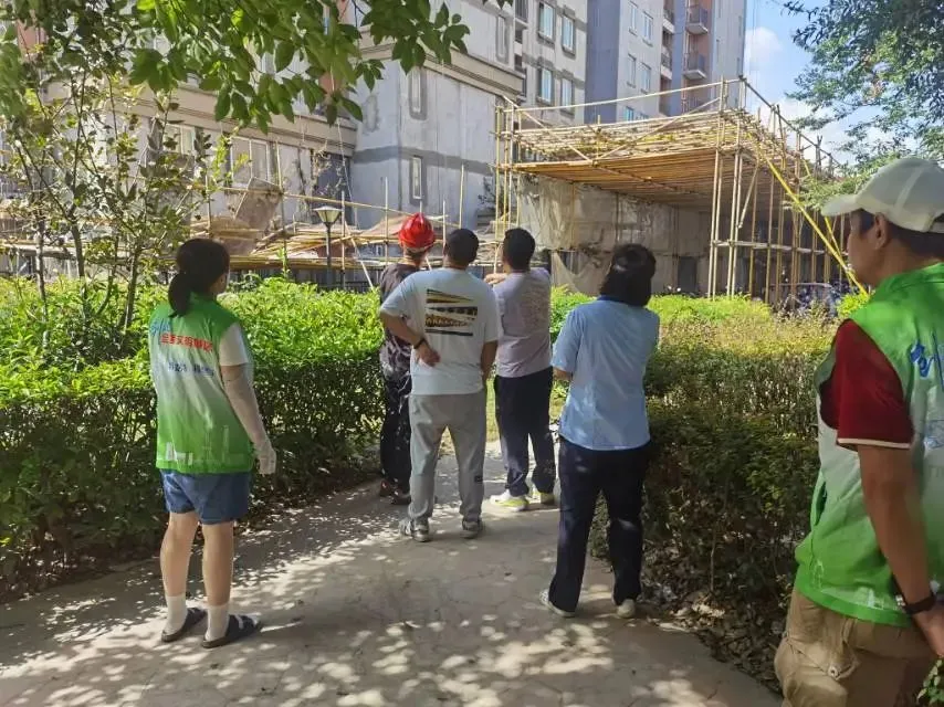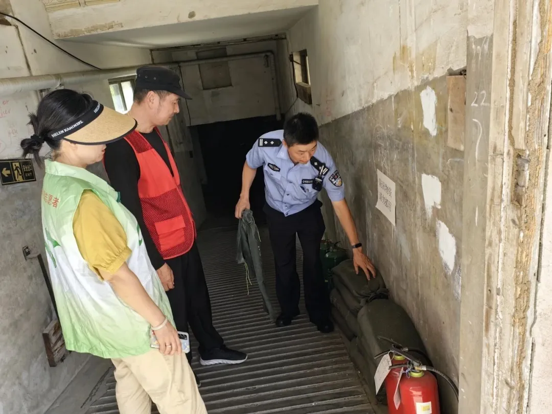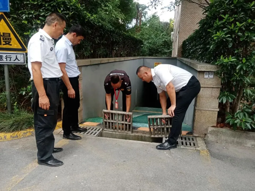 各居民区干部、社区民警、物业工作人员和志愿者排查小区高空坠物、维护地下车库排水设备、清理排水管网、加固空调外机、顶楼水箱,处理树线矛盾等隐患问题,并新增地下车库防汛沙袋及防汛挡板。