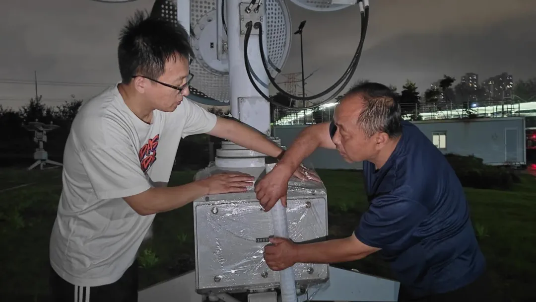 高空工作组在紧急为L波段探空雷达做防水防潮防倒灌水维护