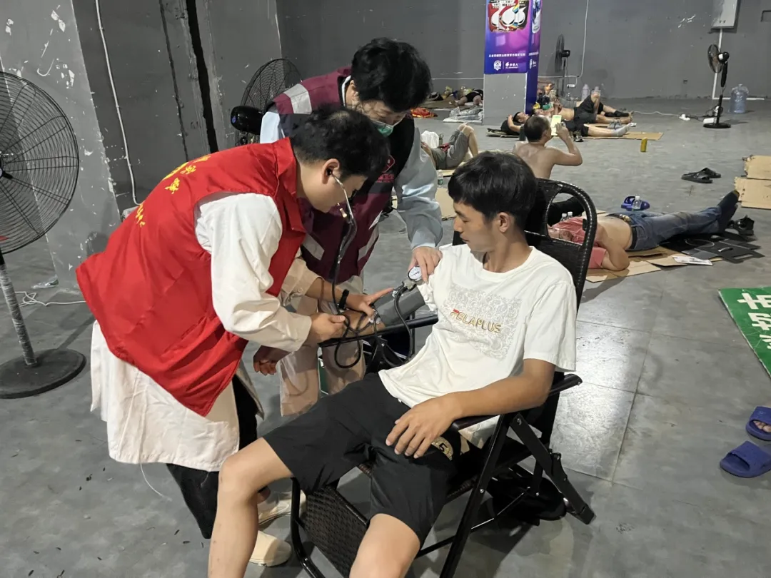 庙行社卫安排医务人员入驻辖区安置点,为700余名安置人员提供24小时不间断的医疗卫生保障。为保障安置点内老弱病残孕等特殊人群医疗健康需求,医疗保障队伍进行逐一排摸,登记基本信息和特殊医疗用药需求、提供健康监测和心理疏导,确保医疗保障精准、有效。