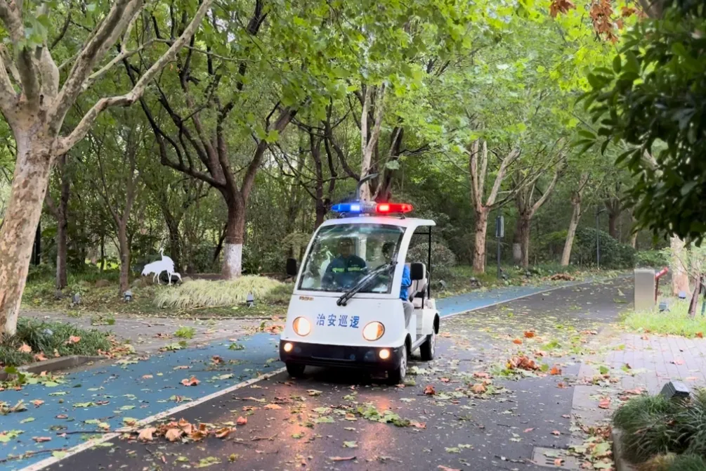 绿化部门组织作业队伍加强公园绿地安全巡查,引导疏散公园游客,落实安全防护措施,及时排除安全隐患;对智慧园林装置采取断电措施,以免漏电风险。