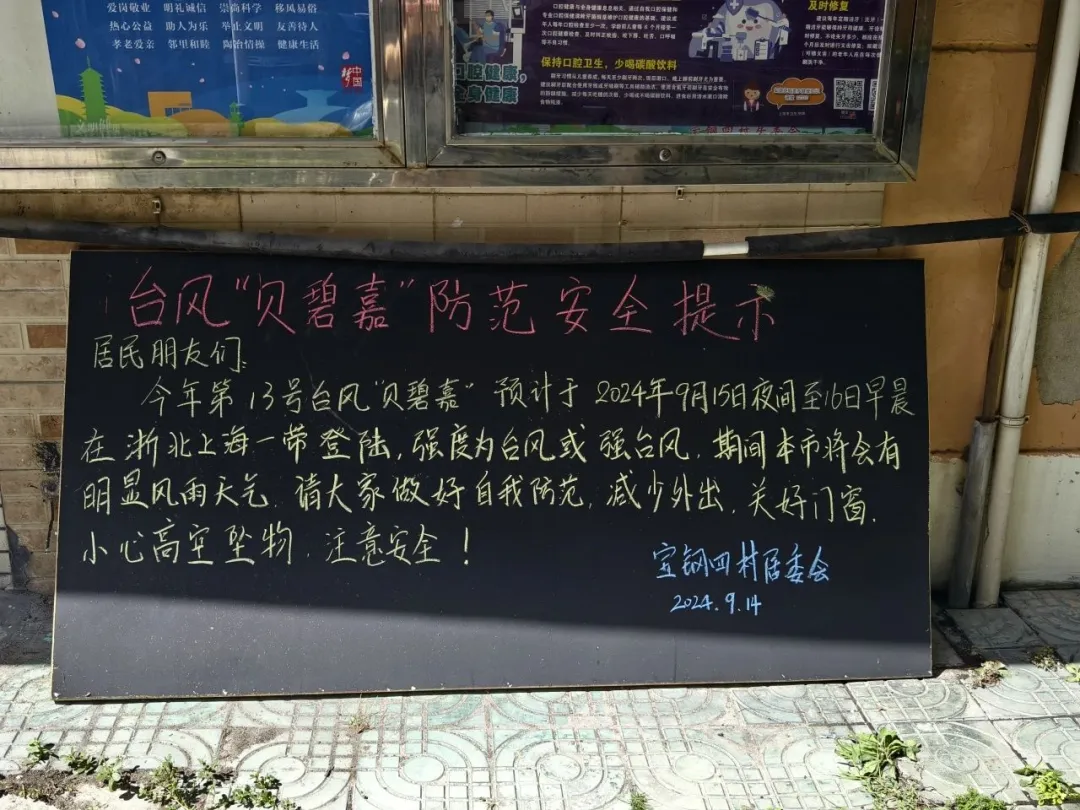 大场镇利用“大场发布”、社区通、电子屏、黑板报等线上线下平台开展广泛宣传。镇各相关部门加强巡查,对树木、户外广告进行加固,整理树线矛盾、清理下水道口,并组织临险人员安全撤离至安置点。