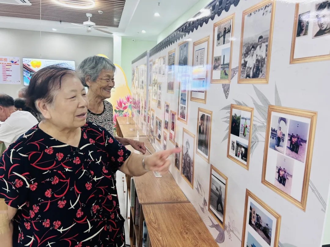 “老照片”同样也能留住“记忆”!在古镇睦邻记忆角内,一场与“时光”的对话正如火如荼开展中。工作人员以“老照片”为纽带,将岁月的温情与记忆的片段娓娓道来。精心布置的照片墙上,一张张泛黄的老照片如同时间的信使,轻轻叩开记忆的大门,引领每位参与者踏上这段记忆之旅。在这场时光盛宴中,顾叔叔,一位援越抗美老战士,以他那饱经风霜的嗓音,深情地讲述那段波澜壮阔的岁月,不仅让在场的老人们心潮澎湃,更激发了大家心中那份深沉的家国情怀。王阿姨则展示了珍藏的车票,重温领袖接见的历史瞬间,传递着对过去的敬仰与怀念。其他老人也纷纷加入讲述的行列,分享自己的精彩故事。