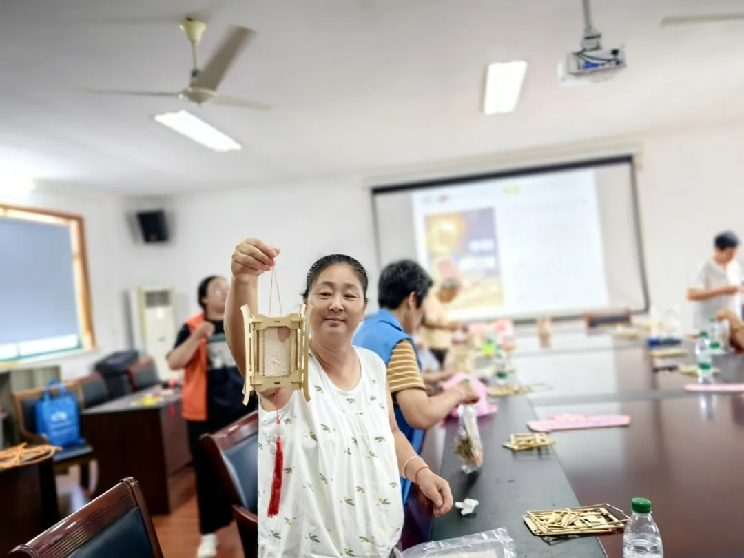 提灯揽明月,巧手迎中秋。在天平村,一场“中秋雅韵”手作活动以灯映月,寄月抒情,将中秋的浪漫和祝福送到村民身边。活动现场,乐耆社工先向村民们展示了制作精美灯笼的步骤和关键点。大家聚精会神地观看着每一个步骤,迫不及待地想要亲自尝试。在社工和志愿者的耐心指导下,村民们开始动手实践,从简单的灯笼材料分类到复杂的拼接,每一个环节都充满了乐趣和挑战。村民们时而互帮互助,时而谈笑风生,脸上洋溢着灿烂的笑容。很快在一双双巧手下,一盏盏独具匠心的灯笼便诞生了。小小华灯,传递的不仅是节日的祝福,更为中秋佳节增添了浓浓的节日气氛。