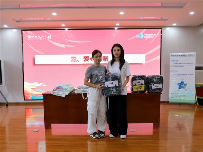 活动最后,中海宏洋绍兴公司党支部向希望小学同学捐赠了书包等学习用品。