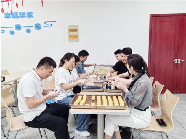 最后,举办了手工月饼DIY团建活动。大家转“战”食堂,看到提前准备的各式各样的月饼模具、材料以及红枣、黑芝麻、莲蓉、五仁等馅料,纷纷戴上手套,化身为“月饼大师”,准备大展身手,或独自专注操作,或相互讨论交流,不时传来阵阵笑语。有的员工手法娴熟,制作的月饼精致美观;有的则略显生疏,但在同伴的帮助下也逐渐找到了感觉。大家不仅享受到了动手制作的乐趣,也感受到了传统文化的魅力和企业大家庭的温暖,更在合作中增进了彼此间的了解和友谊。