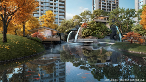 项目以山水意,造中国园。高墙深院,全石材立面,山水林瀑,飞鸟游鳞,超万平山水中庭,形成一个可行、可望、可居、可游的山水园境。