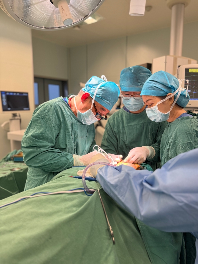 上海九院整复外科章一新教授团队为患者开展手术。受访者 供图