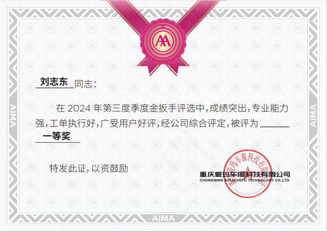 近期,2024年第三季度爱玛电动车“金扳手”评选活动落幕。2位车服员工获得金牌技师称号,4位员工获得银牌技师称号,6位员工获得铜牌技师称号。本次评比旨在选拔培养高质量服务人才,提升专业服务技能,纵深推进爱玛服务体系建设,是爱玛践行服务价值得到重要举措之一。