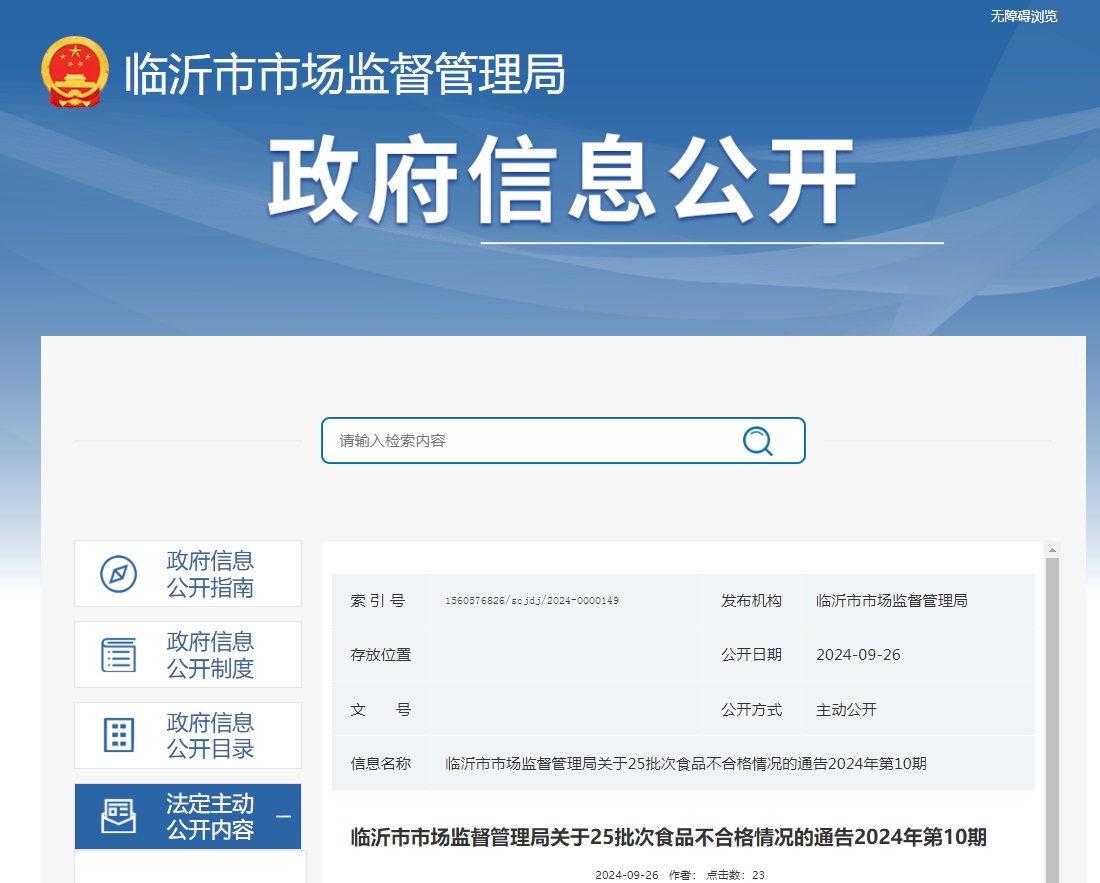 山东省临沂市市场监督管理局关于25批次食品不合格情况的通告2024年第10期