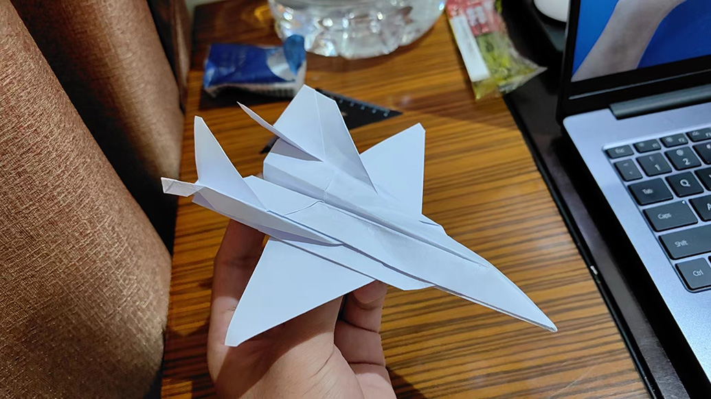 在上特色艺术课时通过展示各类纸飞机,来向同学们介绍空气动力学在生活中的运用。在放学回宾馆后和同学们一起学做纸战斗机的折法,因为课后答应一位小朋友要折一架战斗机给他。