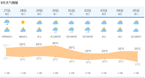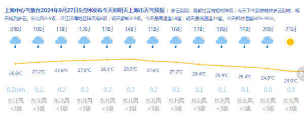 上海今有短时阵雨最高28℃ 冷空气在路上
