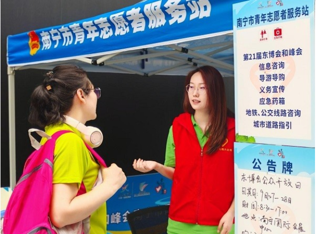 第21届中国—东盟博览会暨中国—东盟商务与投资峰会于9月24日在南宁国际会展中心拉开帷幕。9月25日至26日,中建七局六公司组织8名青年志愿者在城市服务站点上岗服务东博会,展现青春担当、贡献青春力量。
