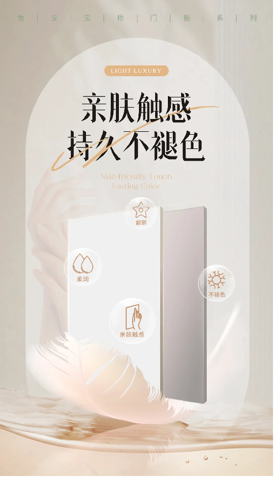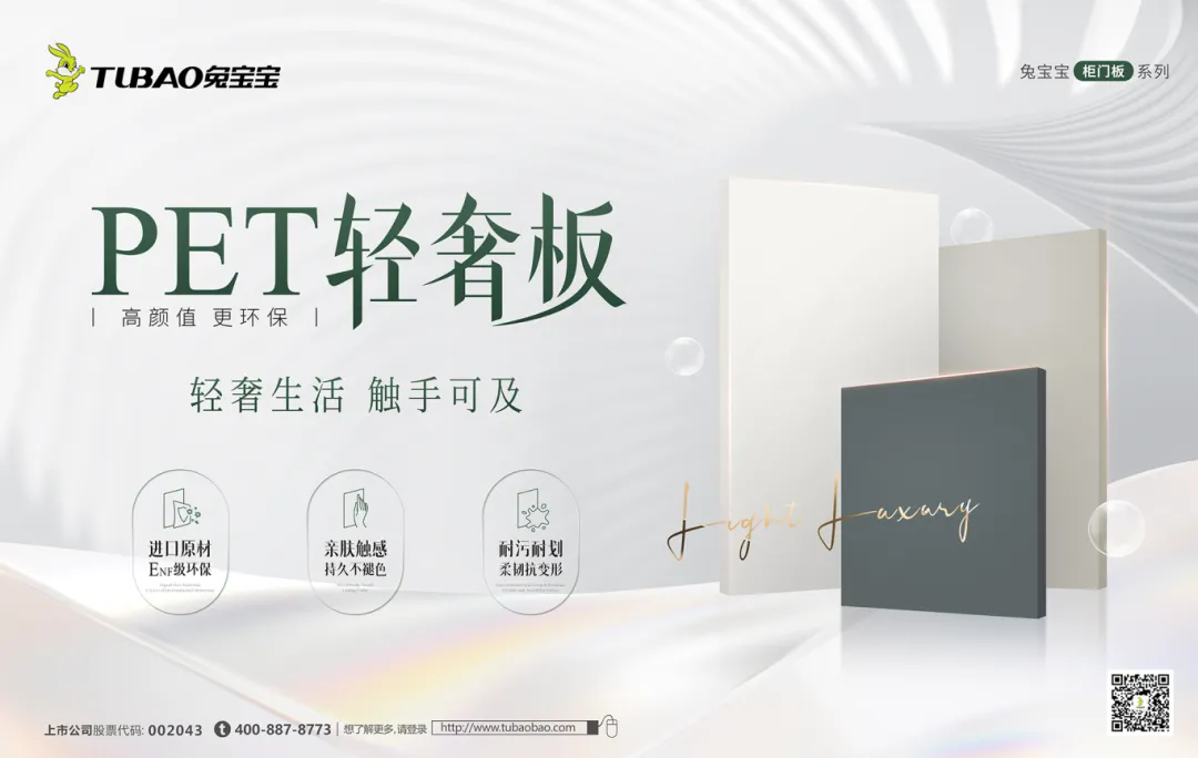 只能偷懒哪够呢,我们还需要精致的生活体验。兔宝宝PET轻奢板亲肤触感,指尖轻触宛如新生儿平静柔和肌肤般细腻滑爽,柔软舒适,给家居赋予了温暖气息,细腻润滑。想象一下,每天下班回家,推开门,迎接你的不是冷冰冰的家,而是如同婴儿肌肤般细腻温柔的触感,让你压力烦恼瞬间消散。而且兔宝宝PET轻奢板,顾名思义,轻奢而不失格调。它以其简约而不简单的设计理念,轻松融入各种家居风格之中,无论是现代简约、北欧风情,还是轻奢复古,都能完美匹配,为你的家增添一抹不凡的气质。它不仅仅装饰了你的空间,更提升了你的生活品质,让你在忙碌之余,也能感受到生活的美好与精致。