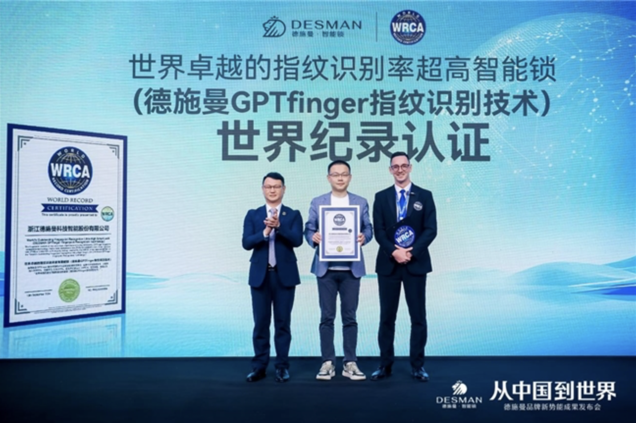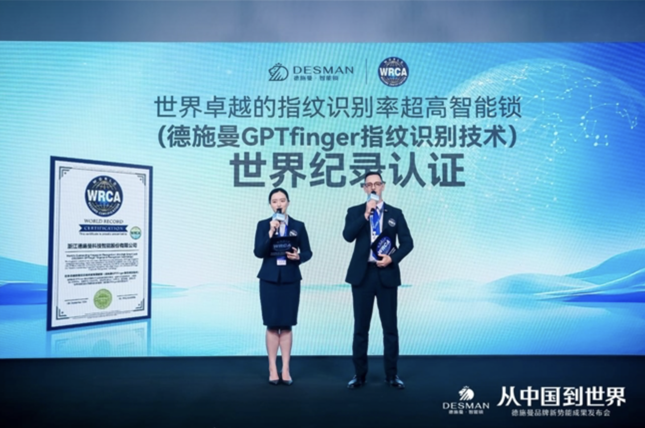 9月25日,德施曼品牌新势能成果发布会在京举行。发布会现场,世界纪录认证机构(WRCA)为德施曼颁发证书,认证德施曼为“世界卓越的指纹识别率超高智能锁(德施曼GPTfinger指纹识别技术)” 。WRCA世界纪录认证官马克西姆在现场强调:“当WRCA证书授予企业或机构时,就代表他是该领域的最高水平。”