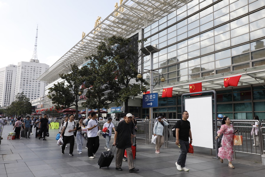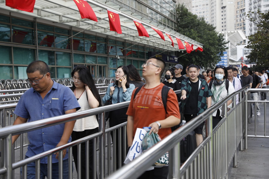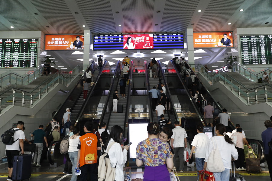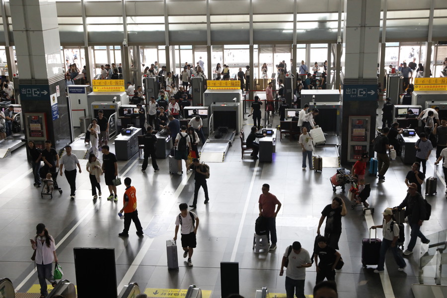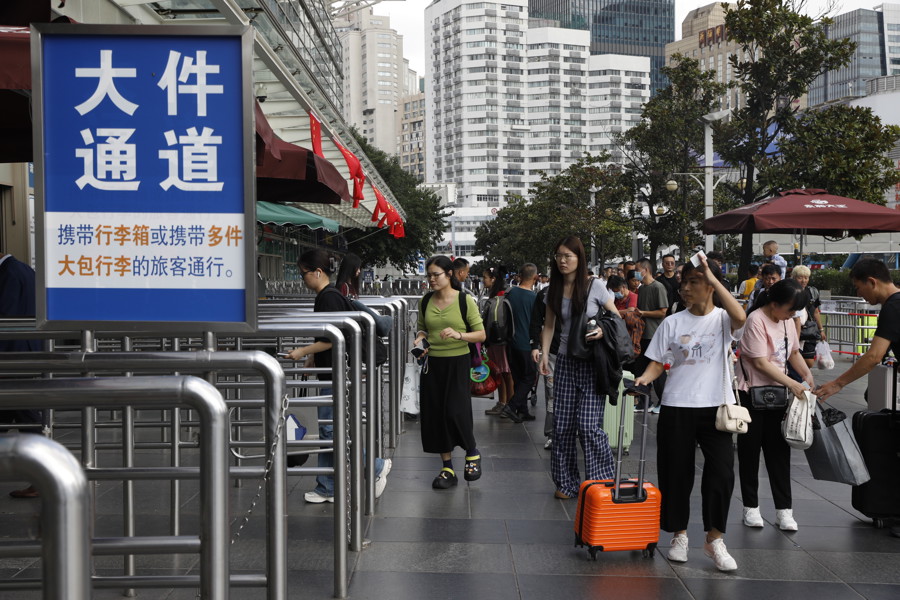国庆长假大客流启动,铁路上海站候车室24小时开放