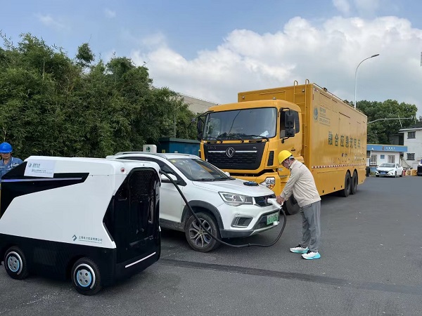 而值班人员,能通过充电设备智能运维管理系统,及时精准发布调度指令,快速调配应急充电车、充电机器人、潮汐充电桩等设备至充电热点区域,安排了属地供电公司和上海电力实业有限公司的工作人员值守在充电站,在现场引导客户操作,维护现场充电排队秩序,为新能源车辆出行保驾护航。