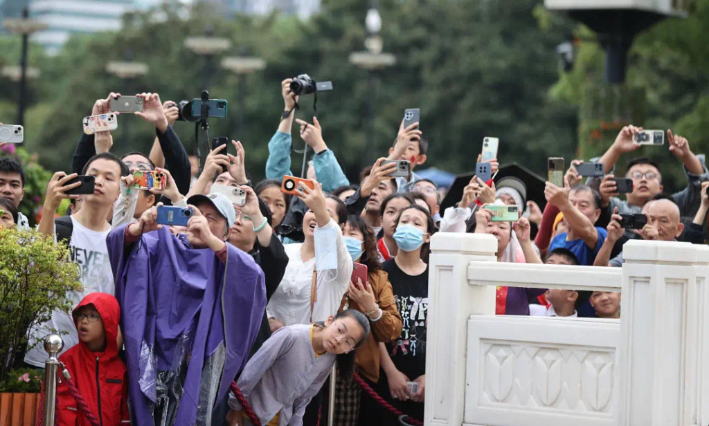 众多市民游客自发前往人民大道升旗台,现场观礼
