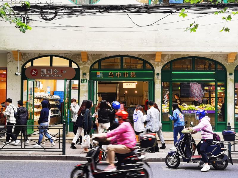 Prada乌中市集门前,拍照的年轻人络绎不绝。