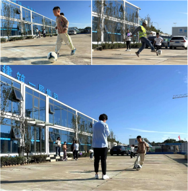 ▲孩子们在家长的陪同下,一起玩“足球运球、足球射门”等趣味游戏,进而加深了孩子和家长的感情。