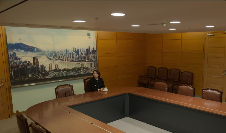 韩剧《女王制作者》中出现的巨幅风景画。视频截图