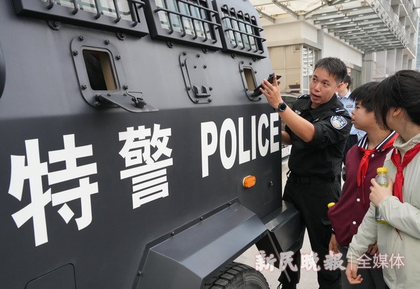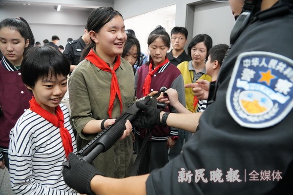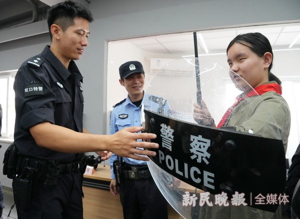 10月15日是国际盲人节。今天上午,上海市盲童学校的孩子们受虹口公安分局特警支队的邀请,在老师的带领下来到虹口特警队员生活和训练的场所,通过触摸、聆听等方式感知警用装备的魅力,同时增强孩子们的安全意识。