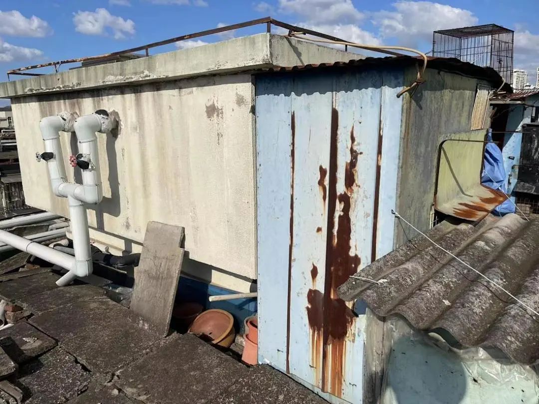 在接收工单后,殷行街道第一网格工作站立即启动联勤联动工作机制,第一时间派遣工作人员与居委、物业工作人员一同赶赴实地勘察。在市民反映的楼道顶层,工作人员发现左侧水箱外被人为设置了一处鸽棚,由于长期风吹日晒,其部分结构已生锈、风化,并伴随着大风“嘎吱”作响,近处还有些许刺鼻的异味。此外,该处附近还零零碎碎散落着不少建筑垃圾,若被吹风落砸伤路人,后果将不堪设想。
