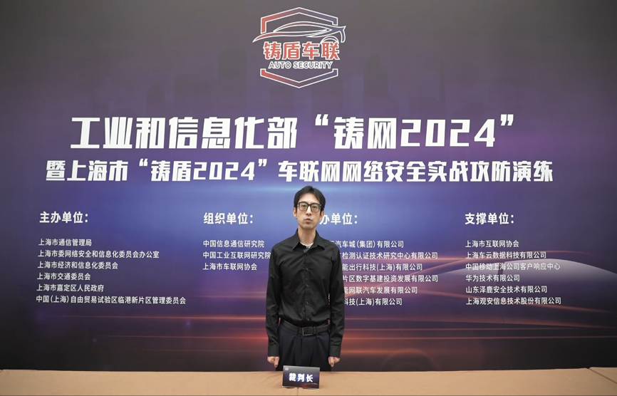 丁炯炯在致辞中表示,嘉定区作为上海市重要汽车产业基地,汇聚了大批智能网联汽车企业和研发机构,拥有得天独厚的产业优势和资源条件。嘉定全力配合“铸盾车联”专项行动,推进“铸盾2024”攻防活动,助力车联网公共服务平台搭建。以此次演练为契机,将进一步加强与相关部门的协同合作,共同探索车联网安全新模式、新路径;积极引进先进网络安全技术和管理经验,推动嘉定区车联网安全产业创新发展。