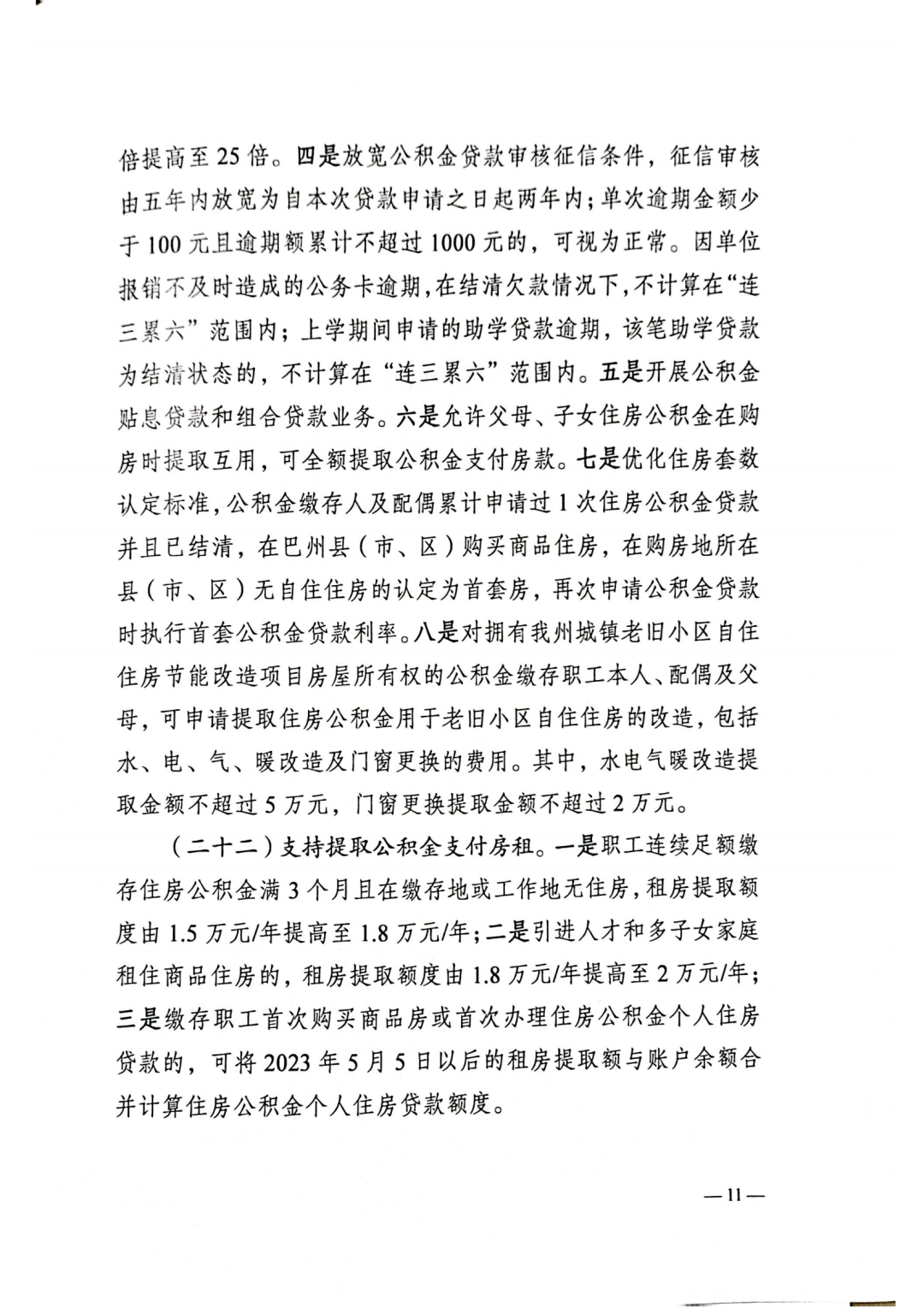 放宽公积金贷款审核征信条件,征信审核由五年内放宽为自本次贷款申请之日起两年内;单次逾期金额少于100元且逾期额累计不超过1000元的,可视为正常。因单位报销不及时造成的公务卡逾期,在结清欠款情况下,不计算在“连三累六”范围内;上学期间申请的助学贷款逾期,该笔助学贷款为结清状态的,不计算在“连三累六”范围内。