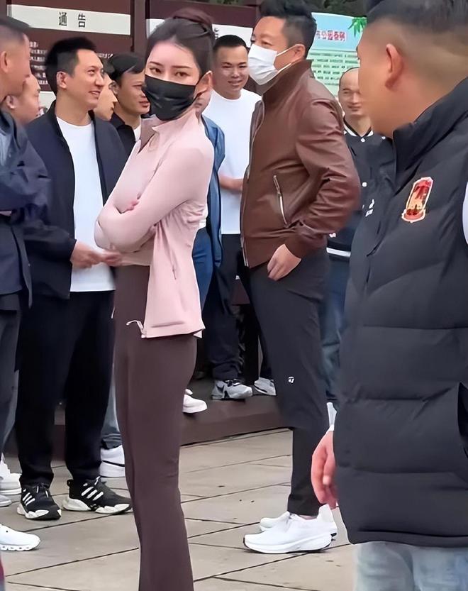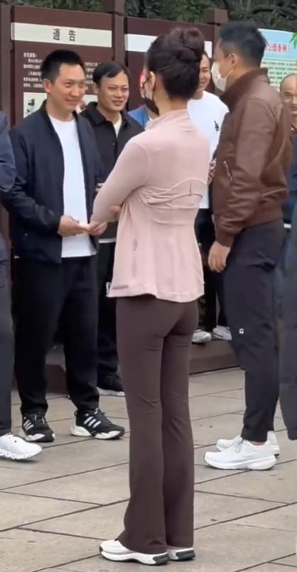 穿着紧身衣和紧身休闲裤的小梅获得大家的关注,她在人群之中特别扎眼,很漂亮身材很好。