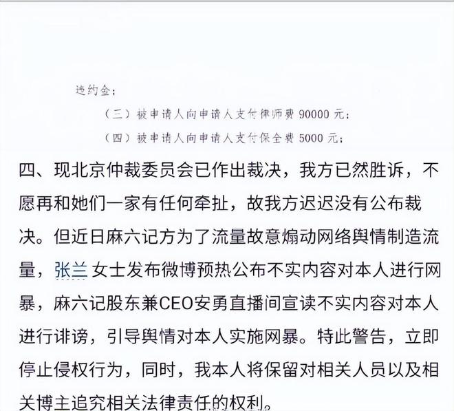 张兰在直播间说孟贺有断章取义,孟贺晒出来的仲裁被抹掉了好几点,说孟贺属于罪加一等。