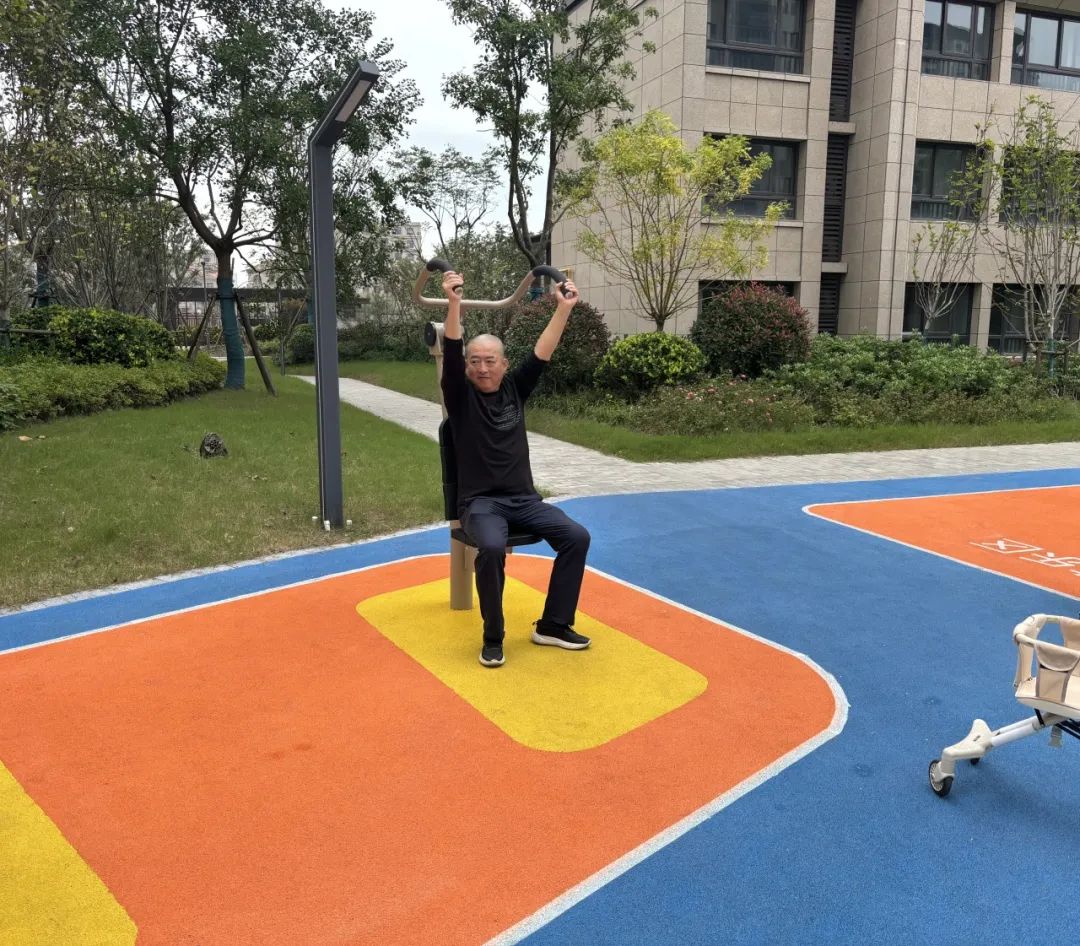 经过精心筹备,健身苑点于今年8月底建成。其中设置了热身区、拉伸运动区、力量训练区和儿童游乐区。