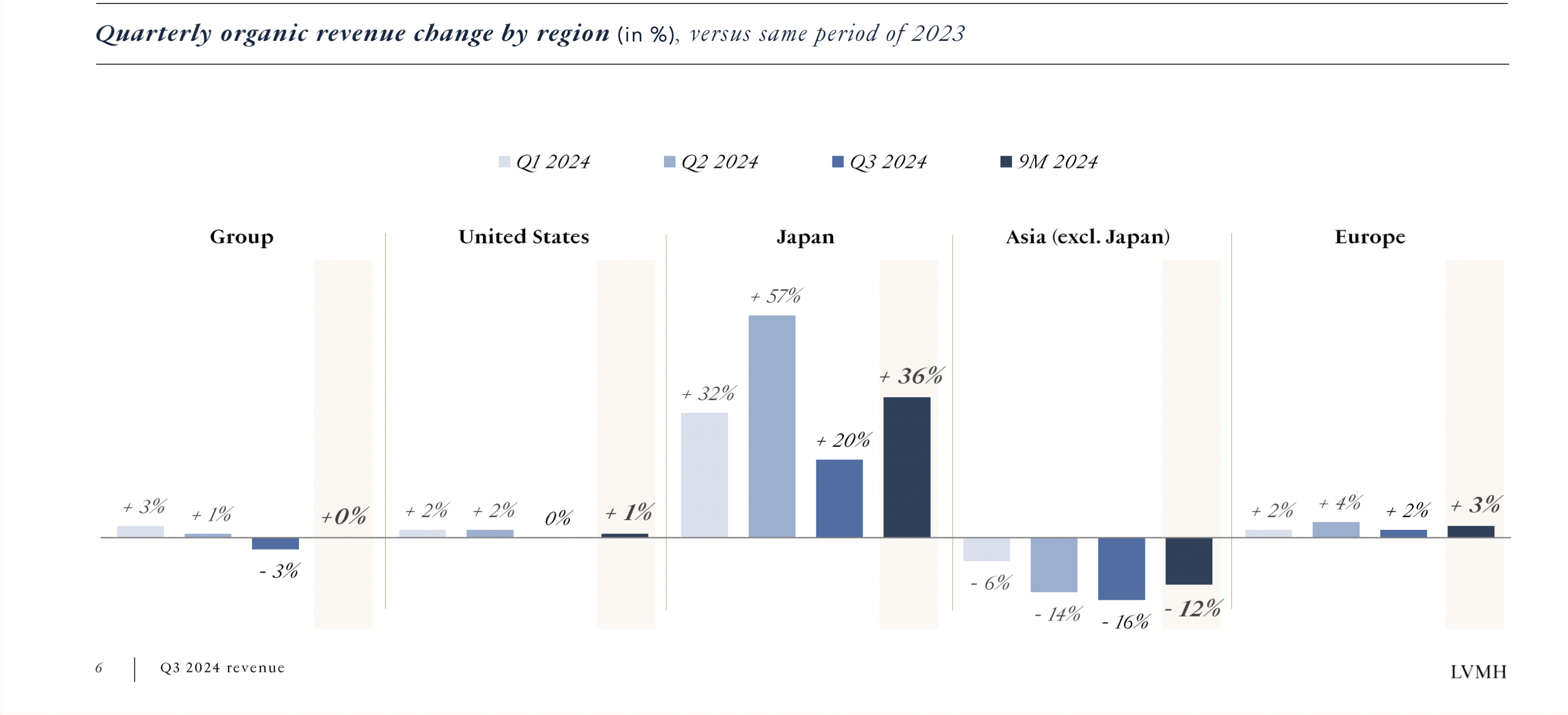 受日本市场增长放缓的影响,LVMH三季度业绩不及预期。