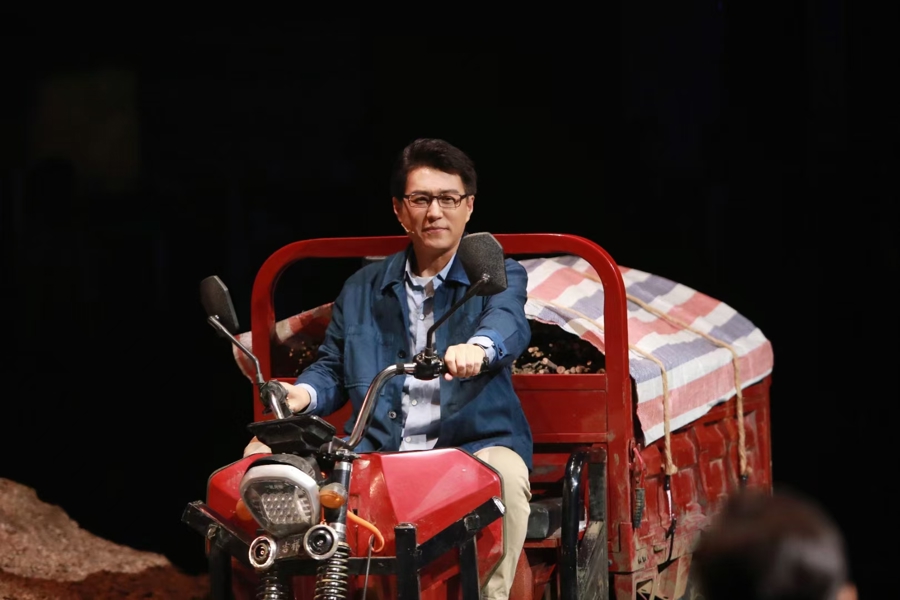 靳东:排演一部现实主义题材原创话剧,尤其是乡村振兴题材戏,我首先就是想,有多少人肯来剧场。在3年创作中,我们反反复复讨论,怎么吸引更多观众尤其是年轻观众,怎么呈现一部真正好看的戏。